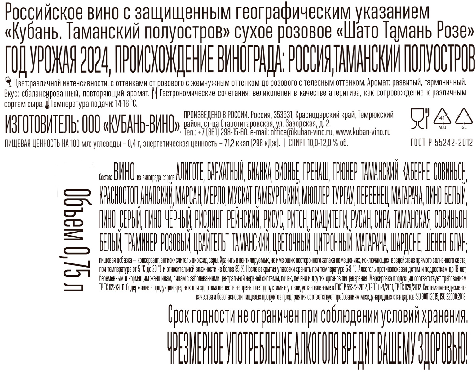 Вино Шато Тамань Розе розовое сухое 0,75 л