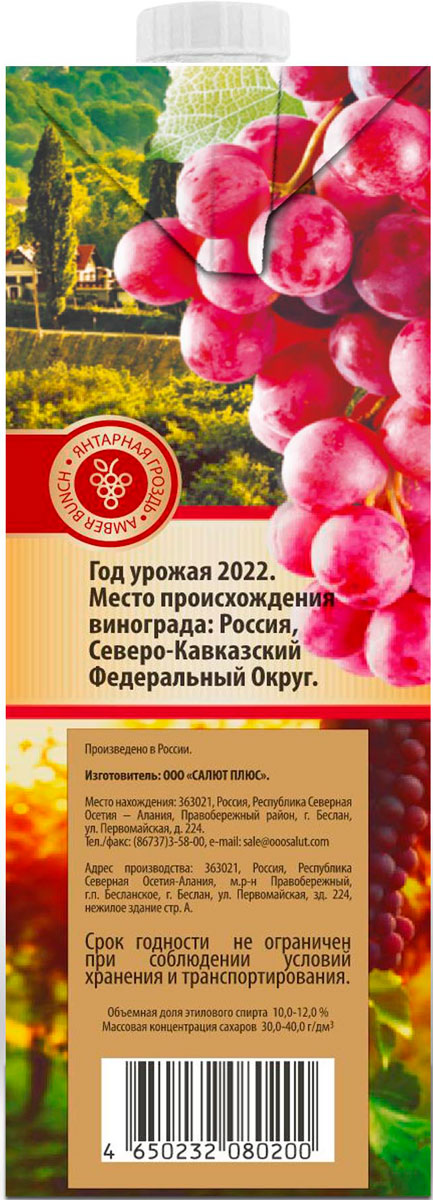 Вино столовое полусладкое красное произведено из винограда сорта Молдова. Вкус вина насыщенный, свежий с длительным послевкусием. Аромат насыщенный. Вино отлично сочетается с свежими фруктами, выпечкой, выдержанным сыром или грецкими орехами.