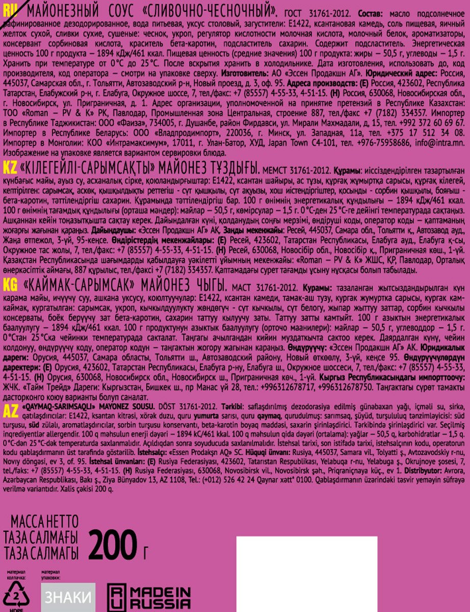Соус Махеевъ майонезный сливочно чесночный 200 г