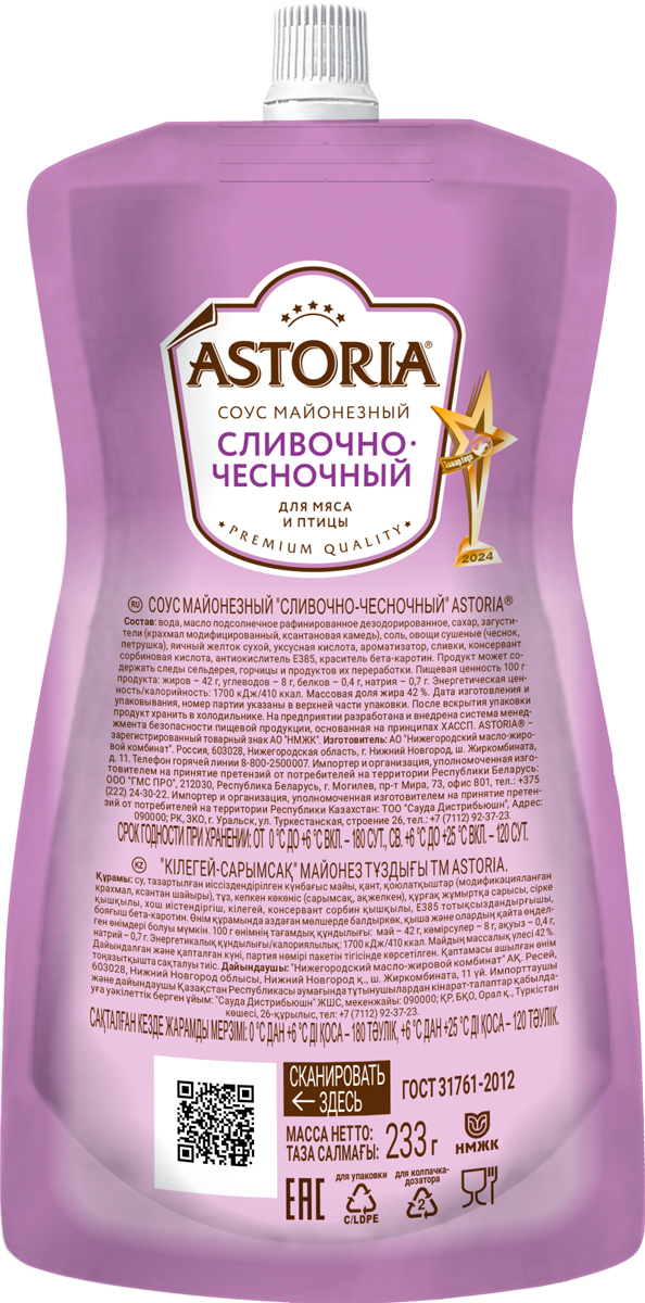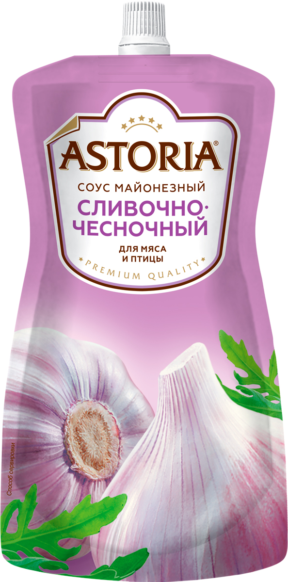 Гармонично сочетает в себе притягательный сливочный вкус и ароматные кусочки чеснока. Он сделает аппетитным и желанным любое блюдо из мяса, птицы или рыбы. Также идеально сочетается с пельменями, салатами, снеками и овощами.