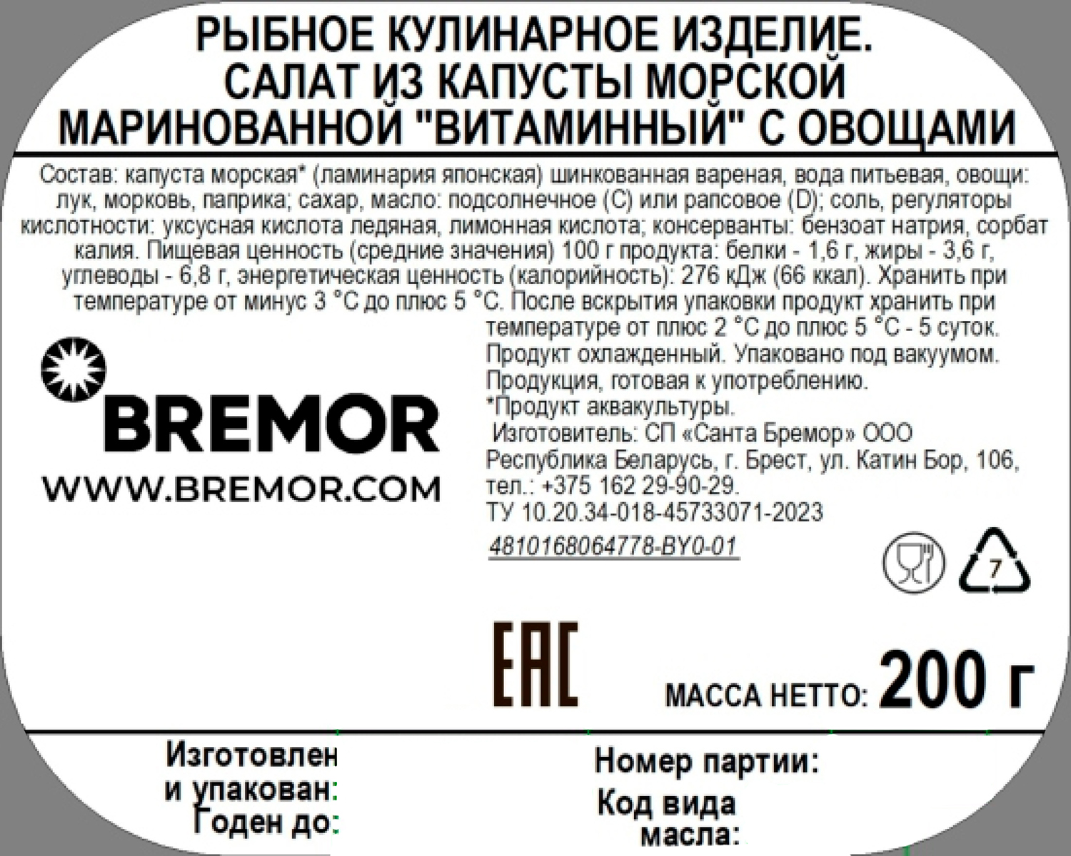 Санта Бремор морская капуста салат витаминный с овощами нямням просто
