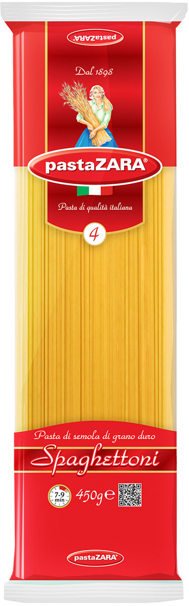 Спагетти классические Pasta Zara № 004 — это классический формат пасты. Длинные и тонкие макаронные изделия из крупки твердых сортов пшеницы содержат оптимальное количество клейковины, поэтому при варке отлично держат форму и сохраняют необходимую твердость. Обновленный современный дизайн делает пачку заметной на полке.