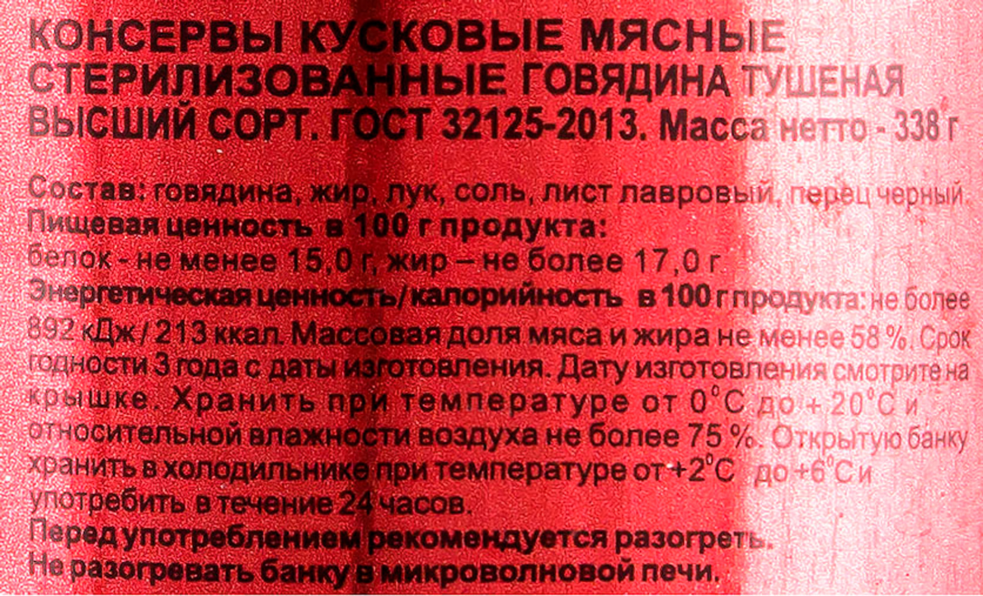 Говядина тушеная высший сорт ГОСТ