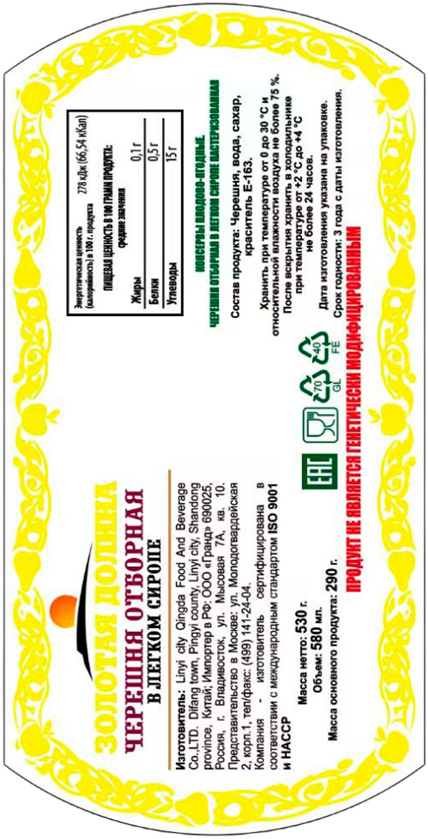 Черешня Золотая Долина в сиропе
