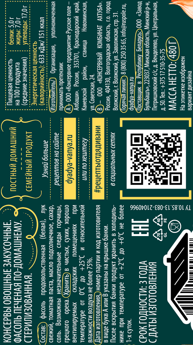 Фасоль печеная по-домашнему Дядя Ваня 480 г