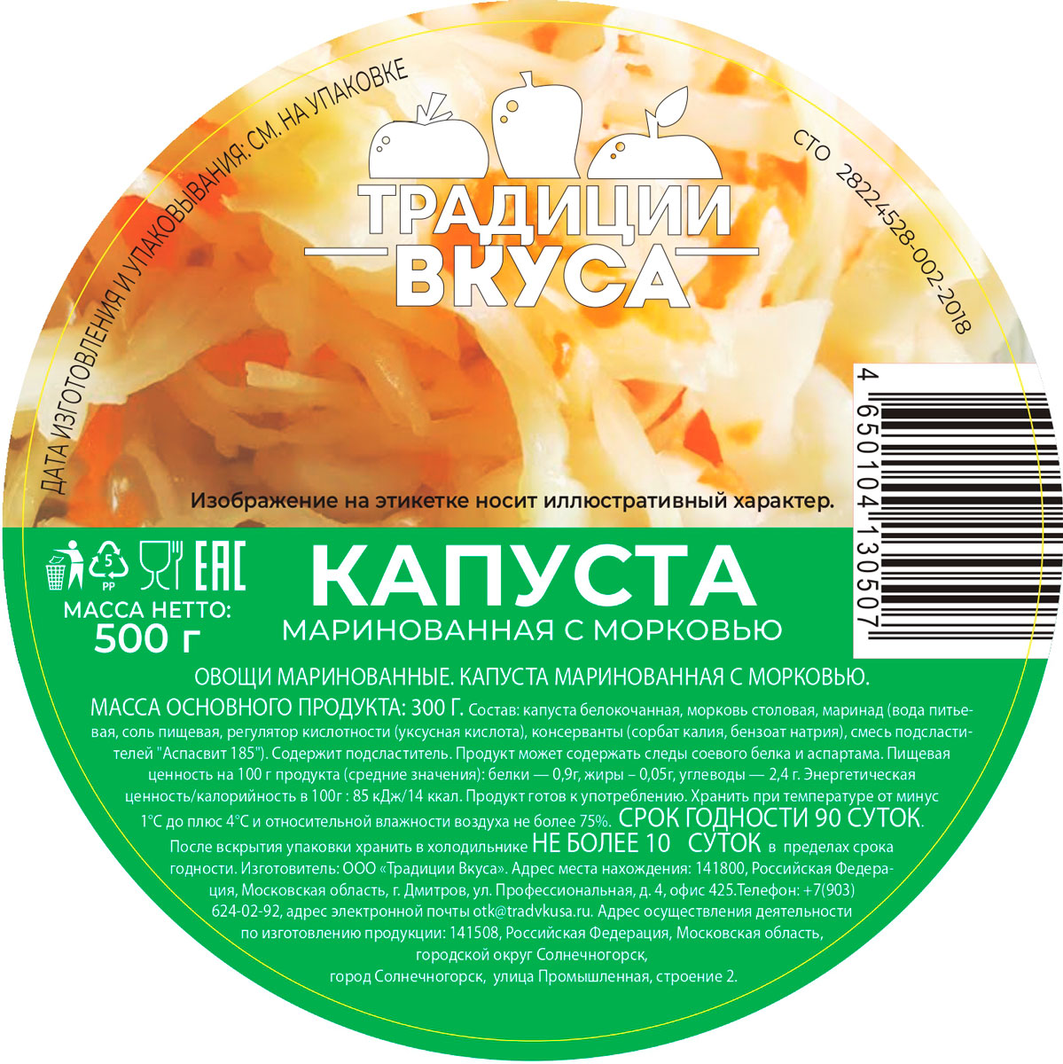 Капуста Традиции Вкуса маринованная с морковью 500 г
