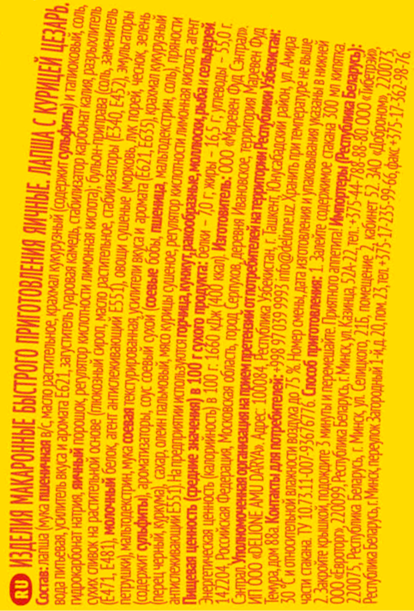Ищете способ разбавить серые будни и попробовать что-то новое? Предлагаем горячую порцию лапши «Роллтон» с уникальным вкусом «Курица цезарь». Вкуснейшая лапша, ароматная курочка и натуральные овощи перенесут вас за столик ресторана в Риме. Цезарь о таком и не мечтал.