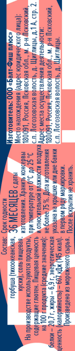 В горбуше содержится большое количество разнообразных питательных веществ, ценнейшего белка, микро- и макроэлементов, а также витаминов (А, С, РР, группы В), необходимых для человеческого организма, полиненасыщенные жирные кислоты Омега-3. Консервы из горбуши можно есть и просто так, и использовать для приготовления салатов, супов, выпечки.