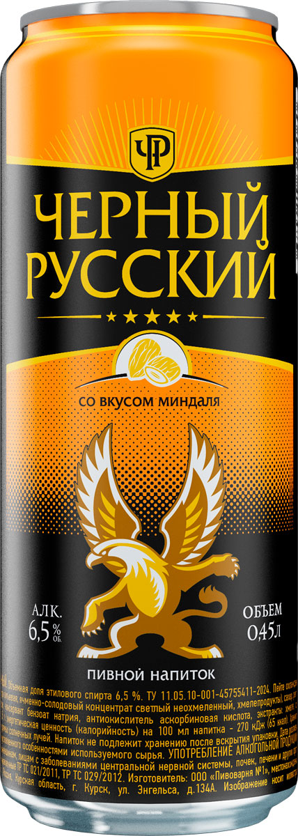 Напиток пивной Черный Русский миндаль ж/б 0,45 л