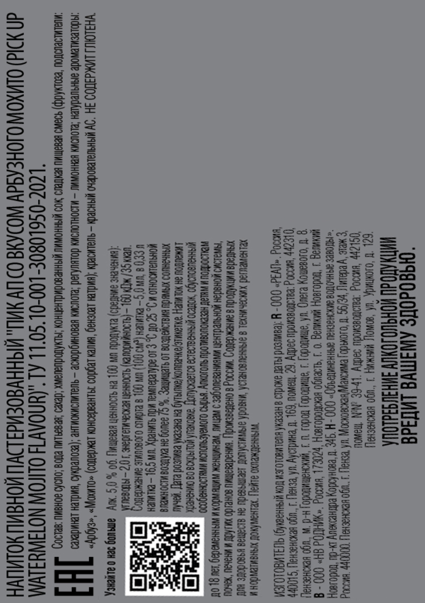 Pick Up – это низкокалорийный пивной напиток натурального брожения. Содержит концентрированный сок лимона. Минимум калорий и легкий вкус арбуза и мяты помогут освежиться, расслабиться и повысить настроение. Pick Up – это ваш выбор!