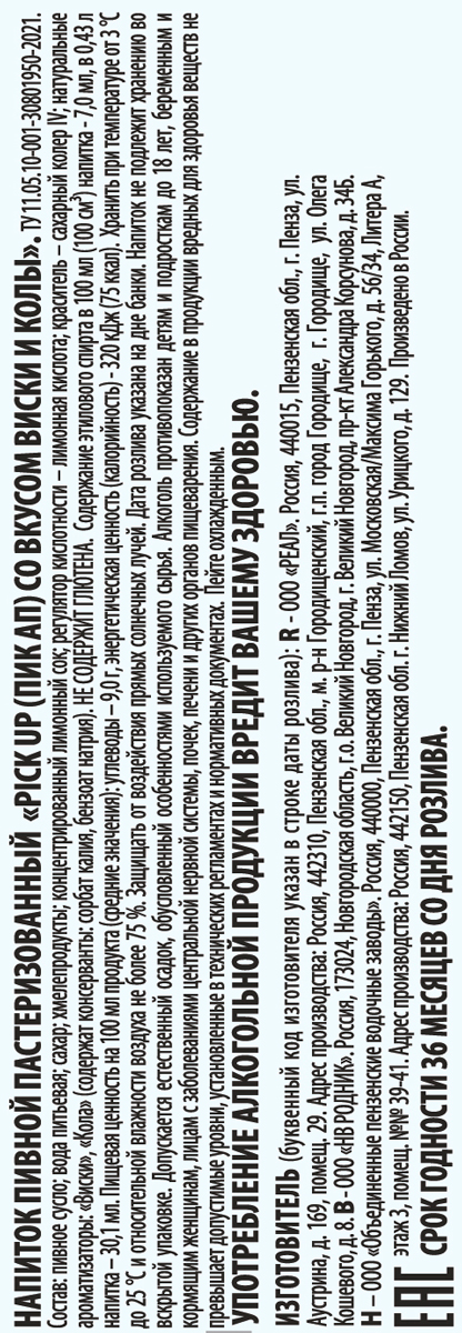 Напиток пивной Пик Ап виски и кола ж/б 0,43 л