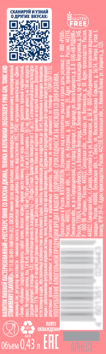 Напиток пивной Регстаерс Пинк ж/б 0,43 л