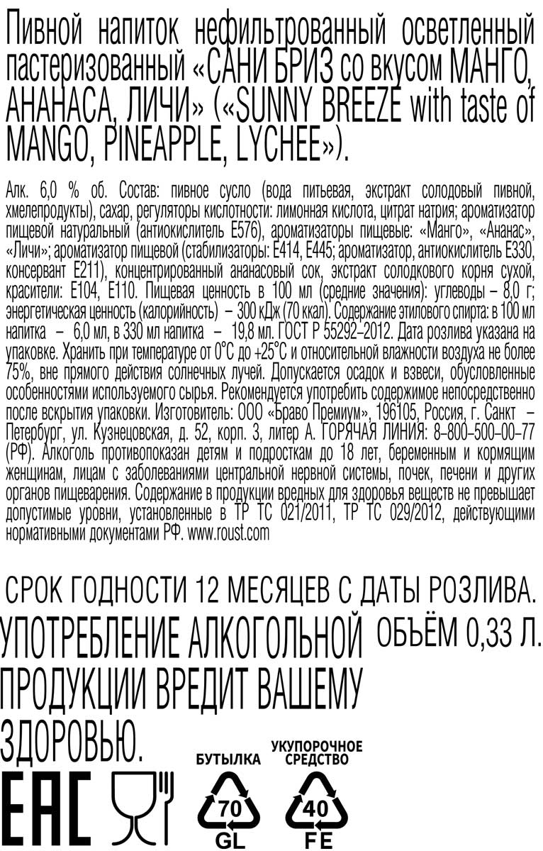 Напиток пивной Сани Бриз манго,ананас,личи ст 0,33 л