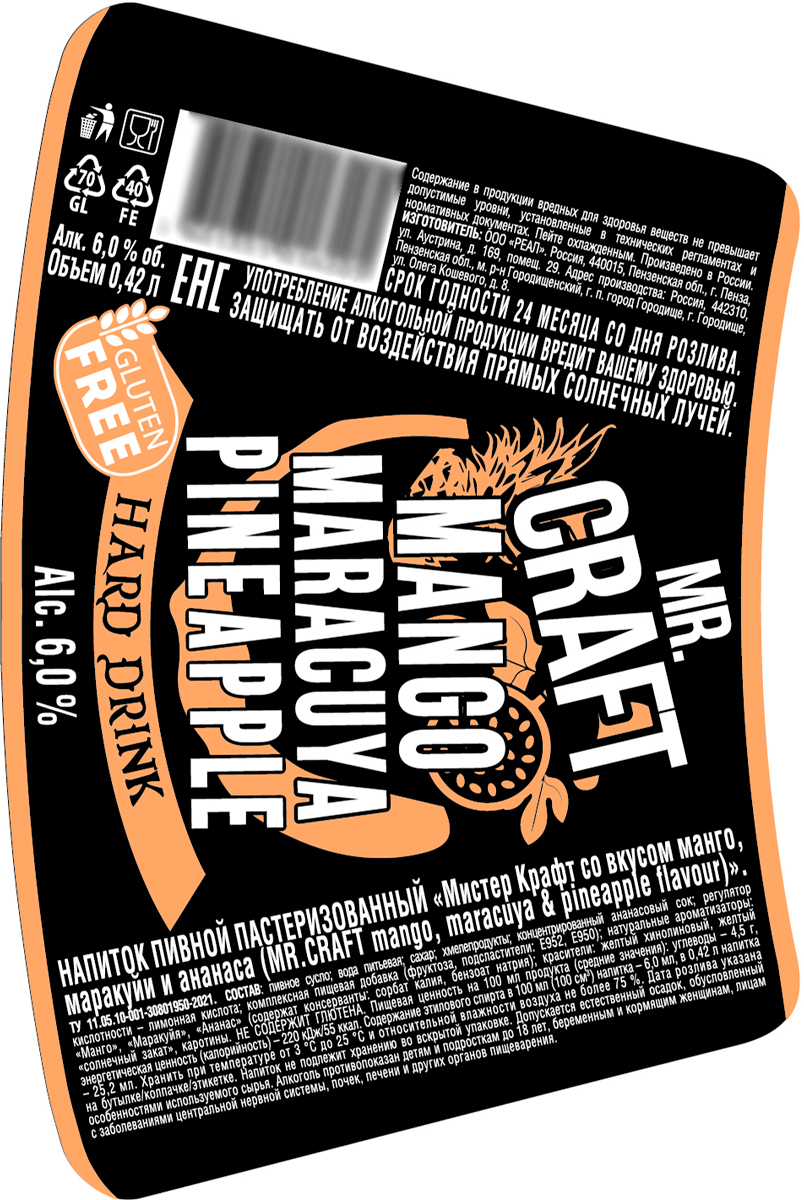 Напиток пивной Мистер Крафт Манго Маракуйя Ананас ст 0,42 л