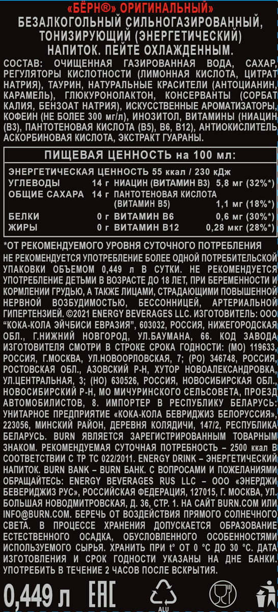 Знание о том, как укрощать огонь, навсегда изменило нашу жизнь и отделило нас от всех других видов на Земле. Начиная с каменного века, некоторые лучшие идеи человечества рождались вокруг огня — и BURN Energy тоже! Мы создали уникальный энергетический напиток с мягким и освежающим вкусом, который разбудит в тебе огонь. Художники, музыканты, атлеты и творцы знают, что нужно, чтобы начать зажигать. Открой банку BURN Energy — и ты узнаешь сам!