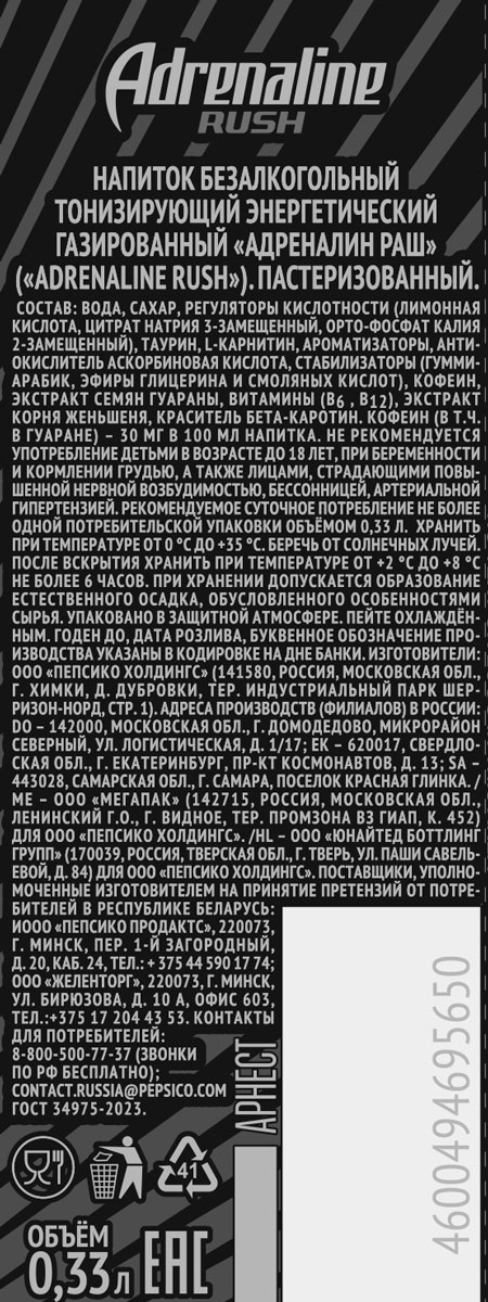 Энергетический напиток Адреналин Раш 0,33 л