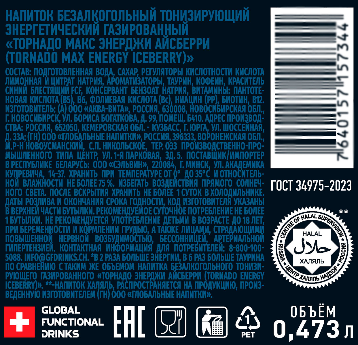 Энергетический напиток Торнадо Айсберри 0,473 л