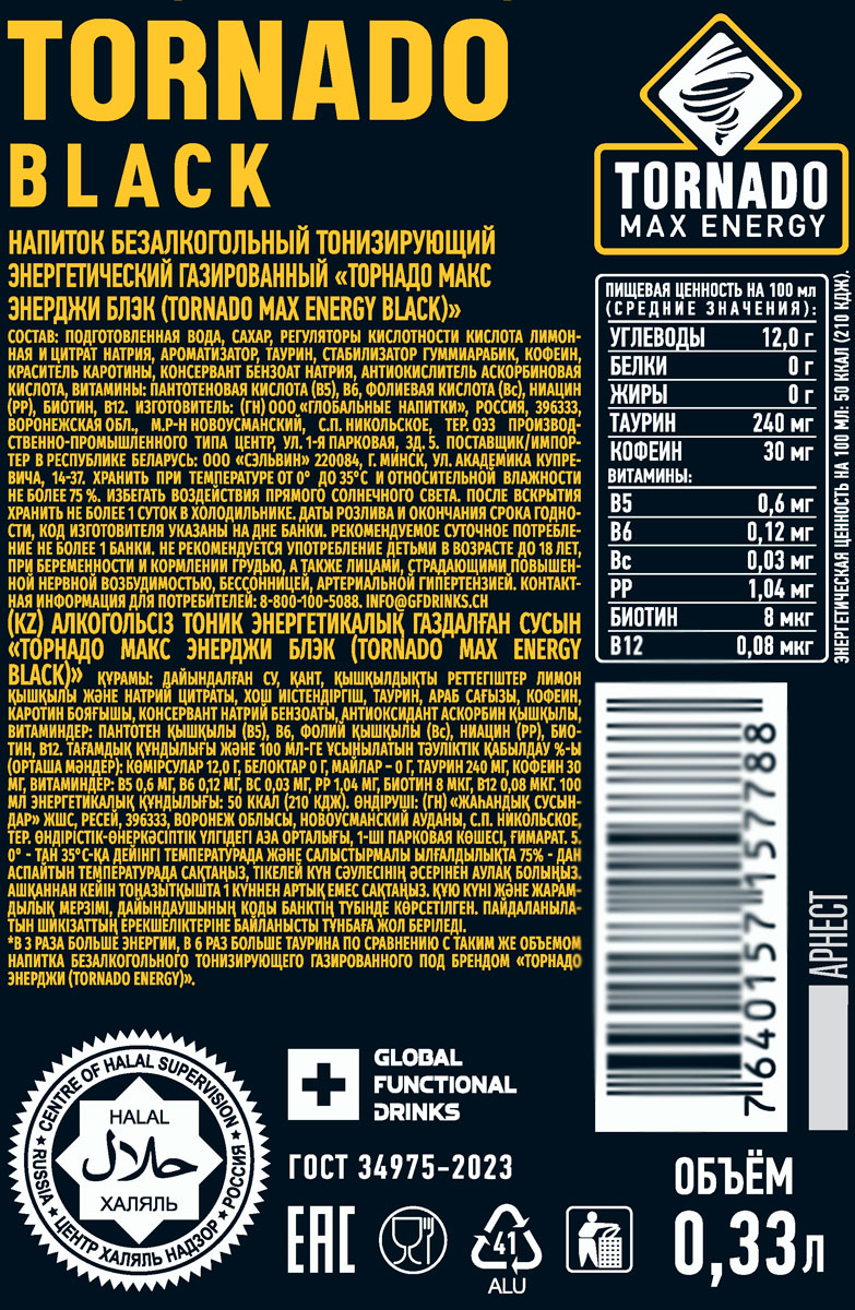 Энергетический напиток Торнадо Блэк
