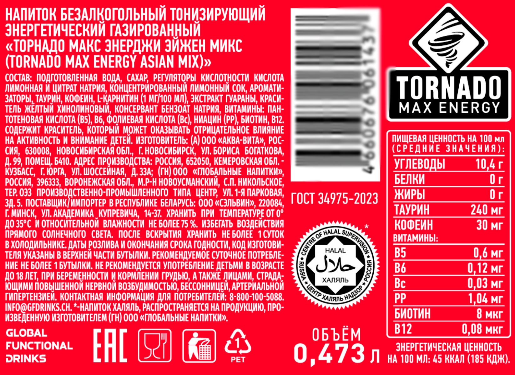 Энергетический напиток Торнадо Эйжен Микс 0,473 л