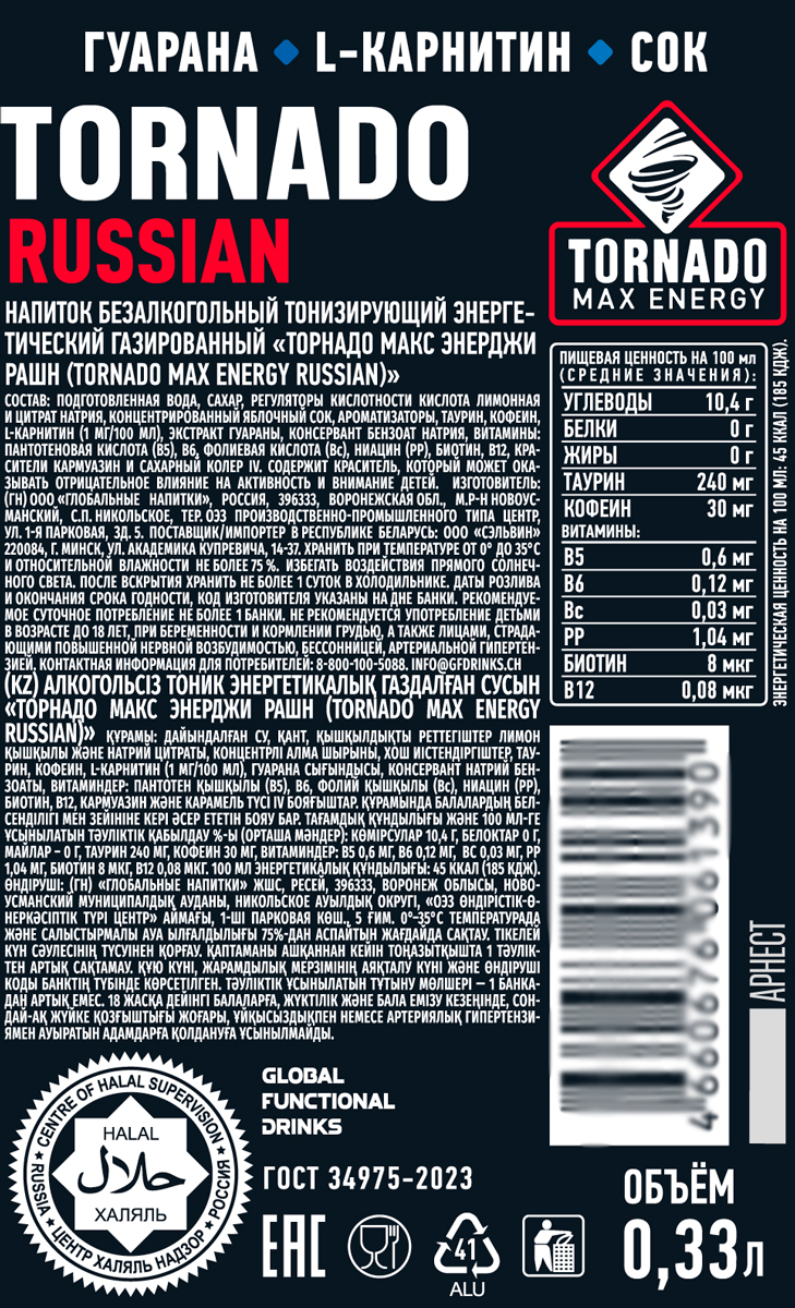 Энергетический напиток Торнадо Рашн