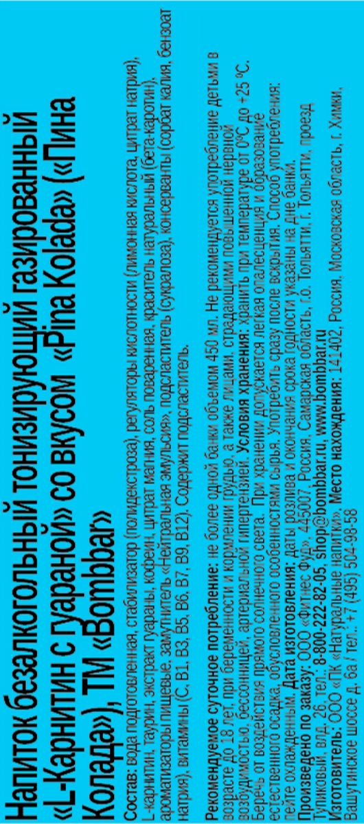 Тонизирующий напиток Bombbar Energy пина колада 0,45 л