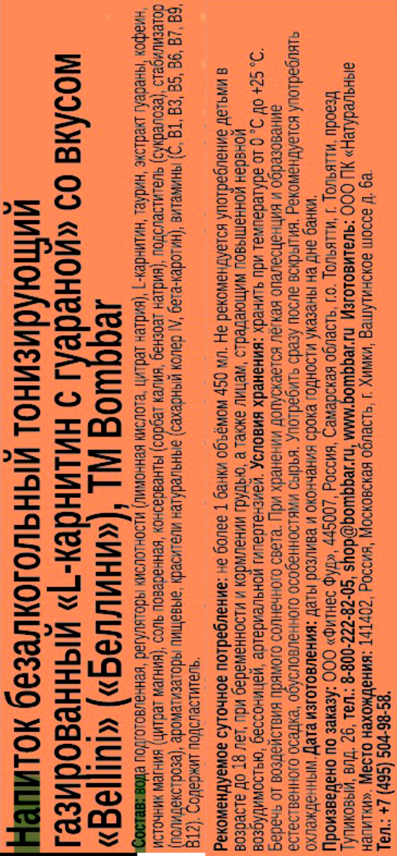 Тонизирующий напиток Bombbar Energy беллини 0,45 л