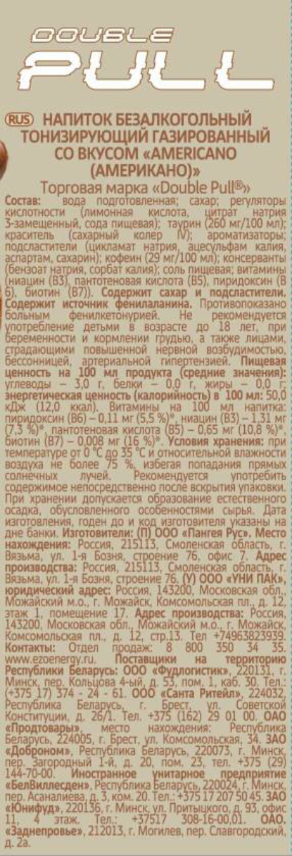 Тонизирующий напиток Double Pull Американо ж/б 0,45 л