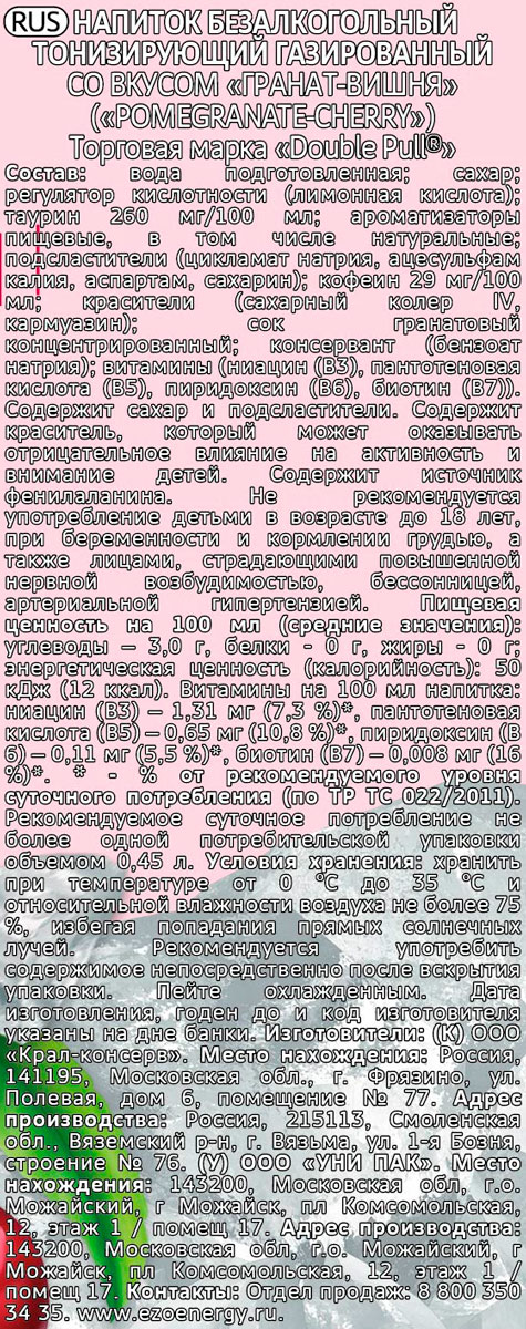 Тонизирующий напиток Double Pull гранат вишня ж/б 0,45 л
