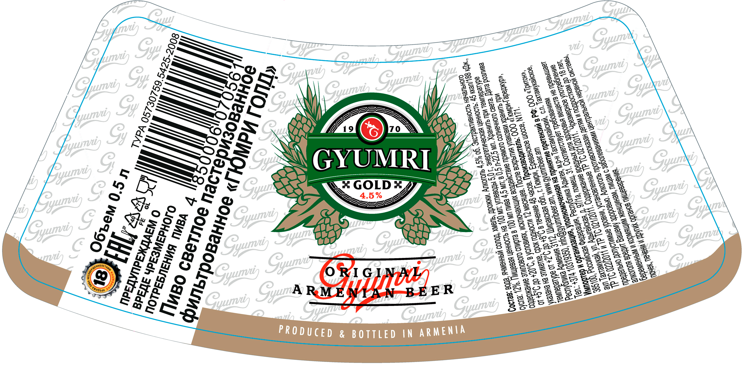 Пиво Гюмри Голд светлое фильтрованное пастеризованное ст