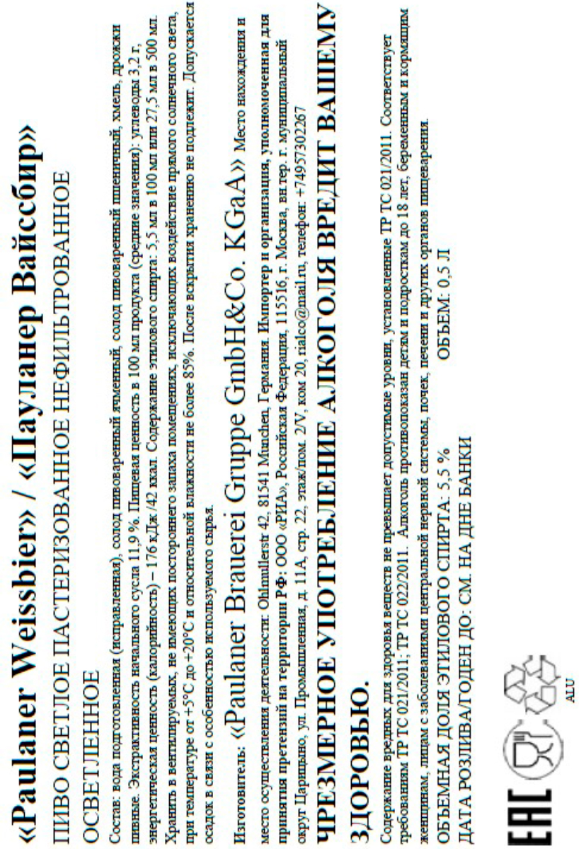 Пиво Пауланер Хефе Вайссбир светлое нефильтрованное пастеризованное ж/б