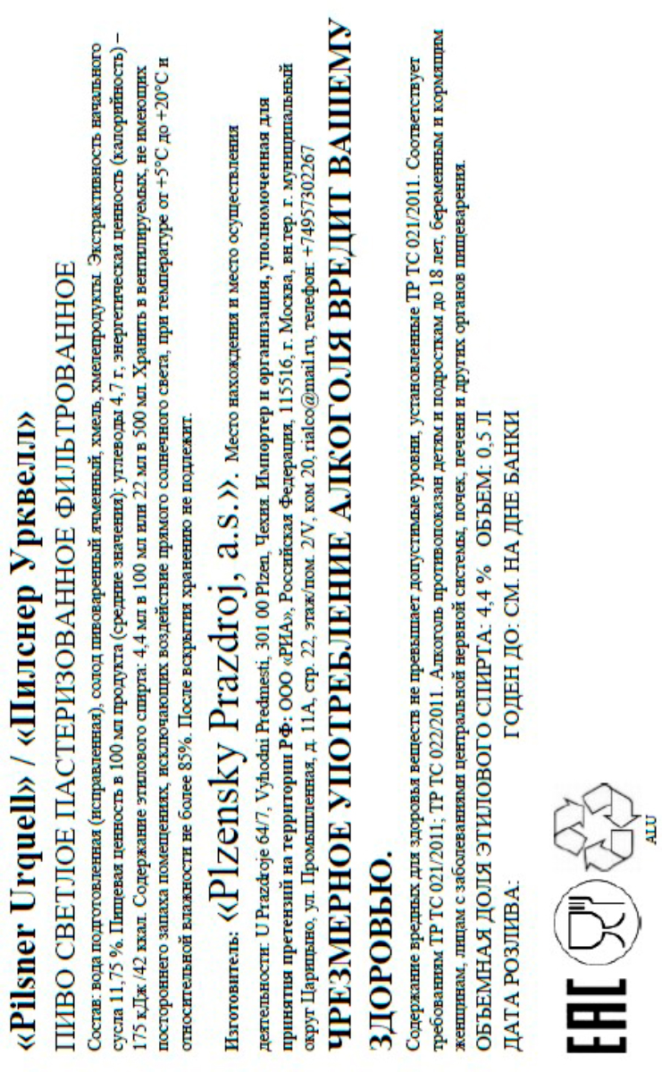 Пиво Пилзнер Урквелл светлое фильтрованное пастеризованное ж/б 0,5 л