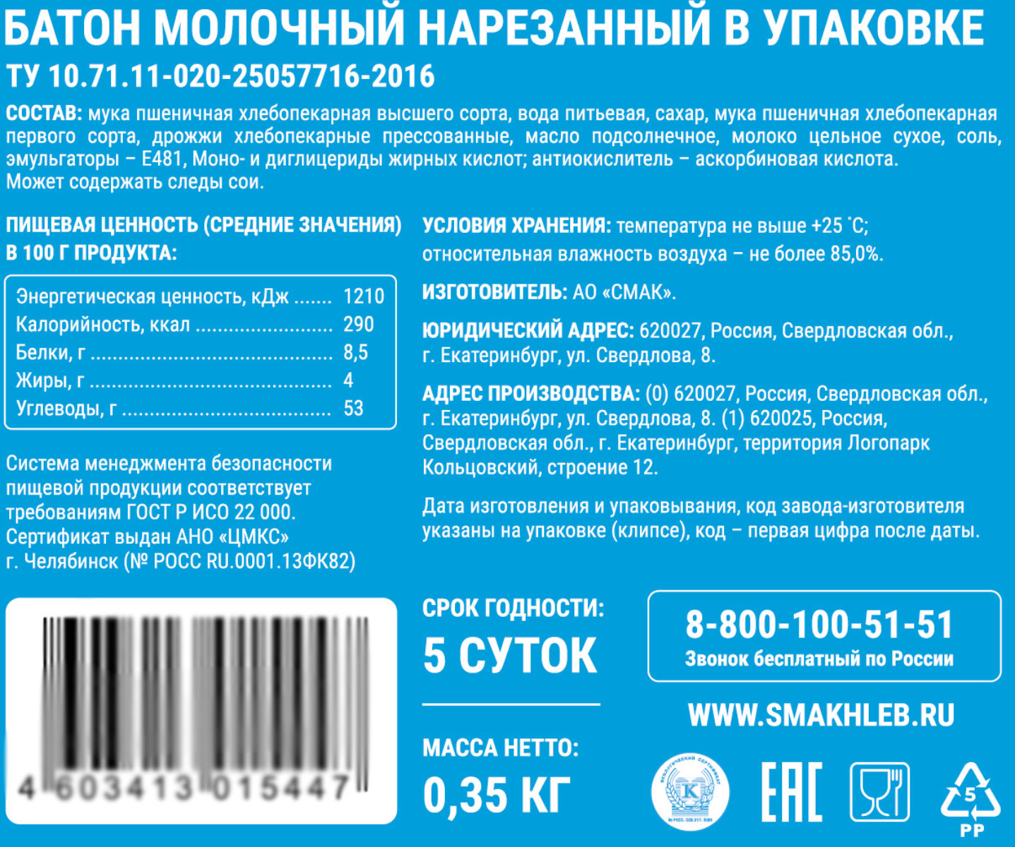 Смак Молочный батон