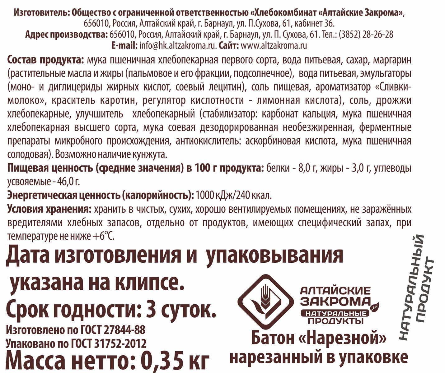 Батон нарезной Алтайские закрома