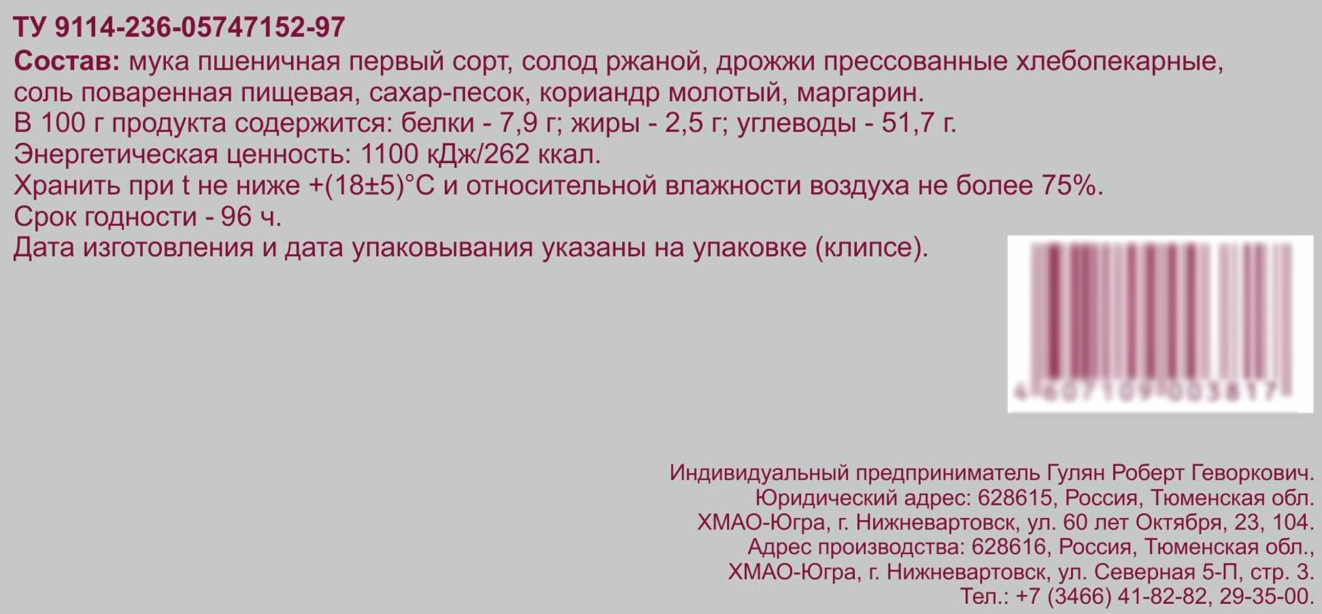 Хлеб «Ароматный» включает в свой состав кориандр и ржаной солод, который несет несомненную пользу организму. Ржаной солод, богатый фосфором, калием, магнием и железом, витаминами В1, В2, В3, В5, В6, В9 и Е, обладает выраженным общеукрепляющим и восстанавливающим действием. А кориандр придает хлебу сладковато-пряный вкус и аромат.