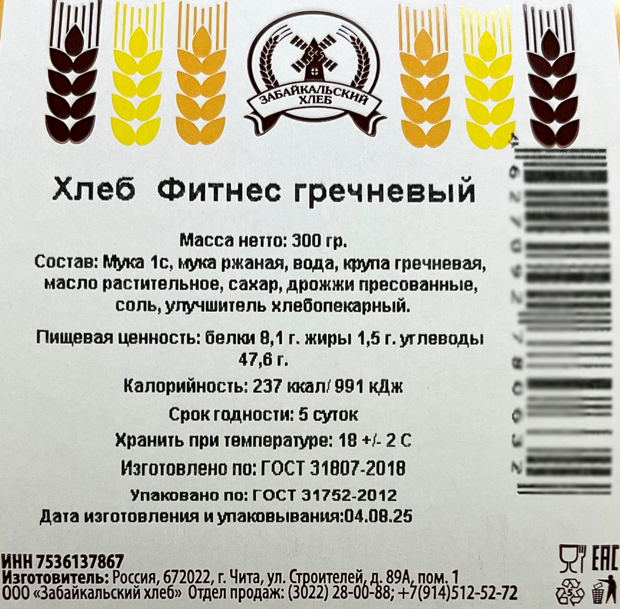 Хлеб Фитнес Забайкальский