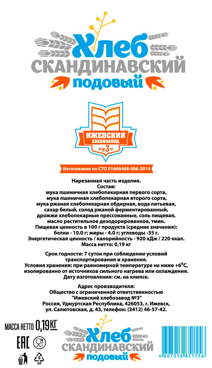 Хлеб Ижевский ХЗ Скандинавский подовый нарезка