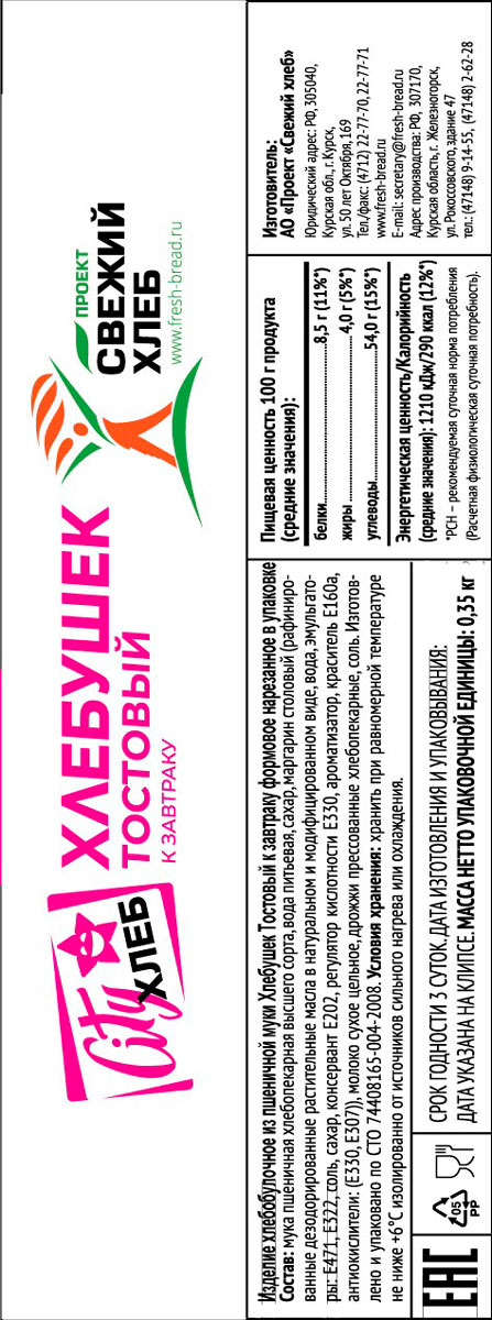 Хлеб тостовый к завтраку «Свежий хлеб»