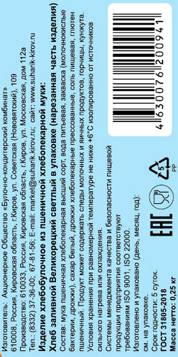 Хлеб заливной Великорецкий БКК Киров