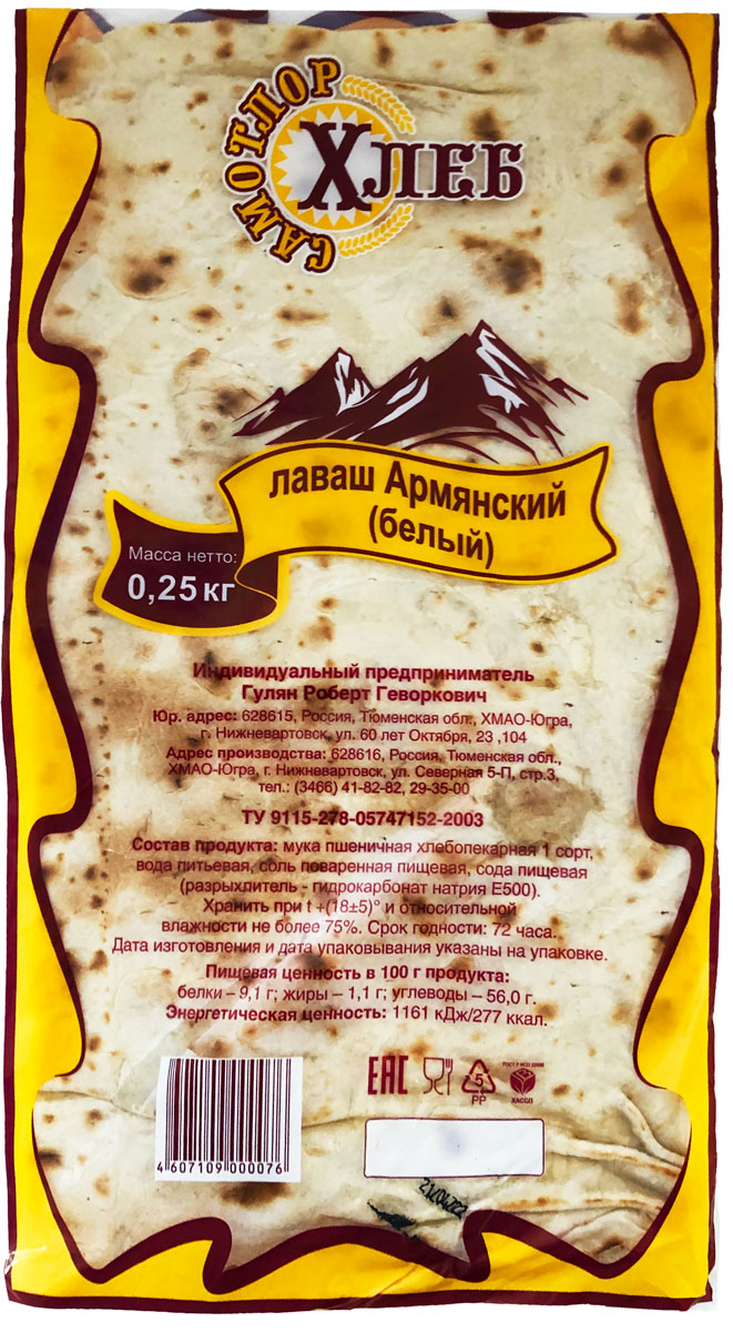 Лаваш Самотлор Хлеб Армянский белый 250 г