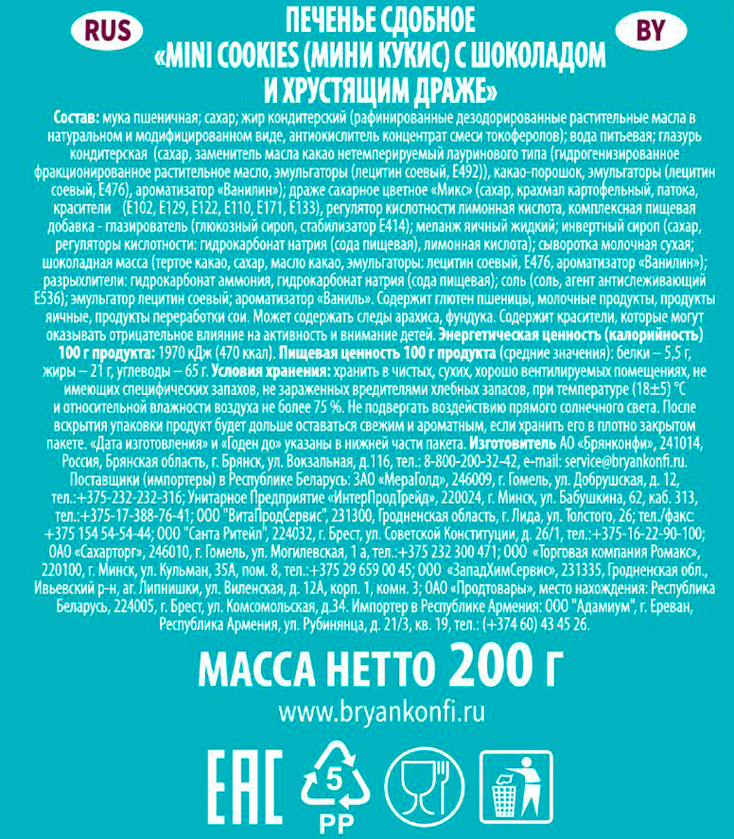 Сдобное печенье небольшого размера с хрустящей текстурой, приготовленное из шоколадного теста с добавлением фундука, или из ванильного теста с тающими кусочками шоколада. Настройся на вкусное с печеньем Mini Cookies!