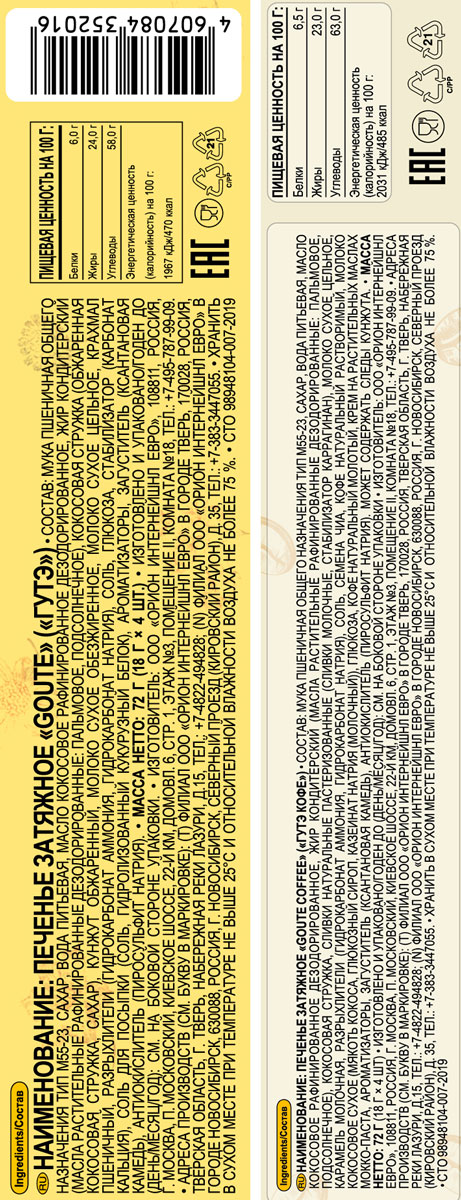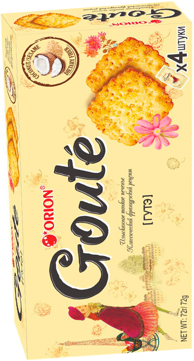 «Гутэ» – изысканное тонкое печенье, созданное по классическому французскому рецепту. Затяжное печенье отличается от обычного песочного печенья меньшим содержанием сахара и сливочного масла (маргарина). Позвольте себе больше удовольствия без зазрения совести, а чашечка кофе только добавит хорошего настроения!