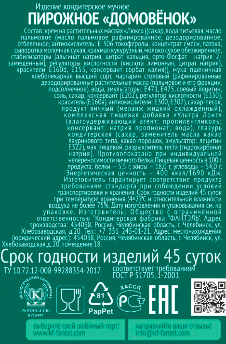 Пирожное Fantel Домовенок