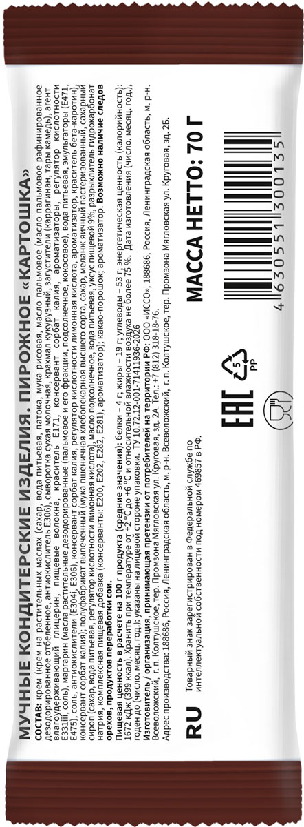 Вкус, знакомый с детства! Нежное пирожное «Картошка» с воздушной текстурой в аппетитной обсыпке. Ностальгия в каждом кусочке.