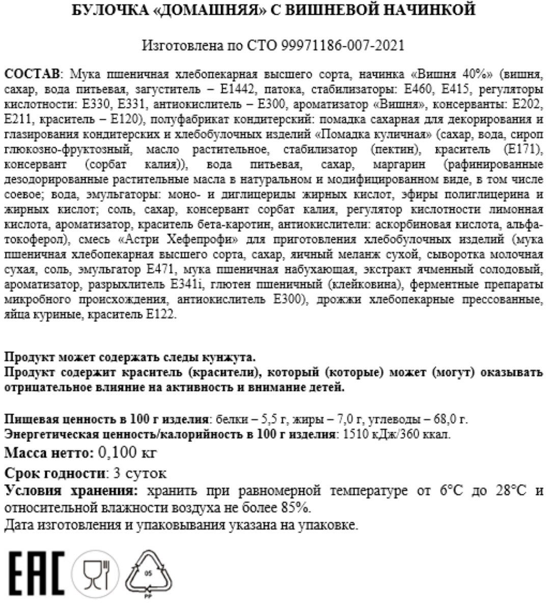 Булочка Домашняя с вишневой начинкой Ваш Хлеб