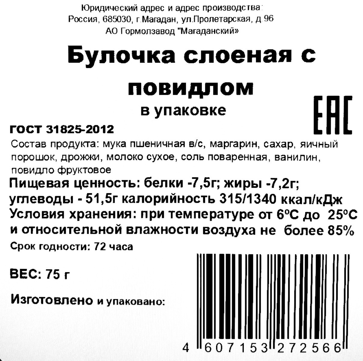 Магаданский Гормолзавод Булка с повидлом