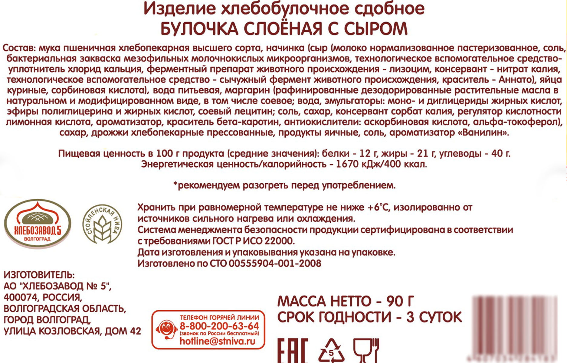Булочка слоеная с сыром Хлебозавод №5