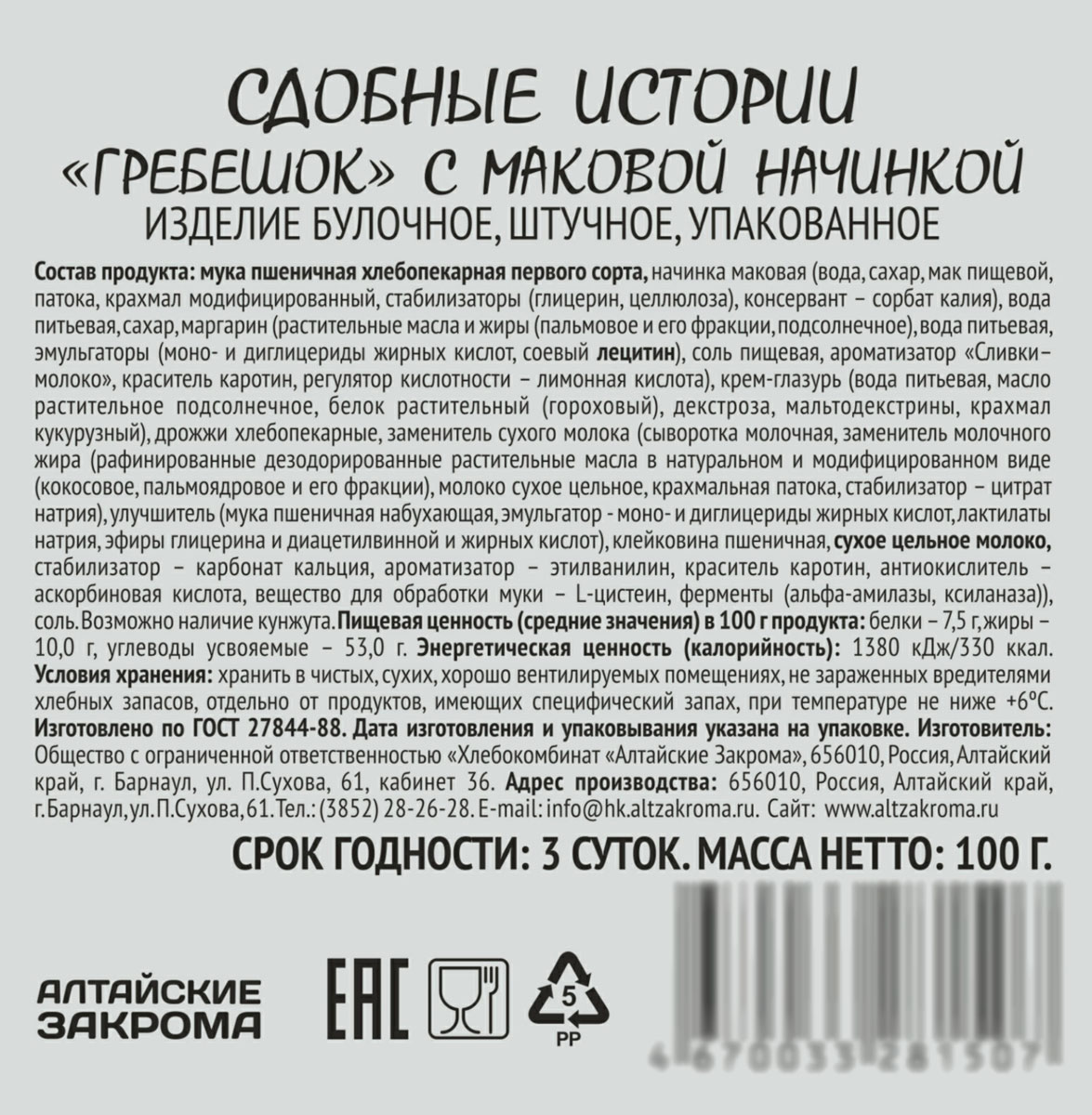 Гребешок с маком Алтайские закрома 100 г