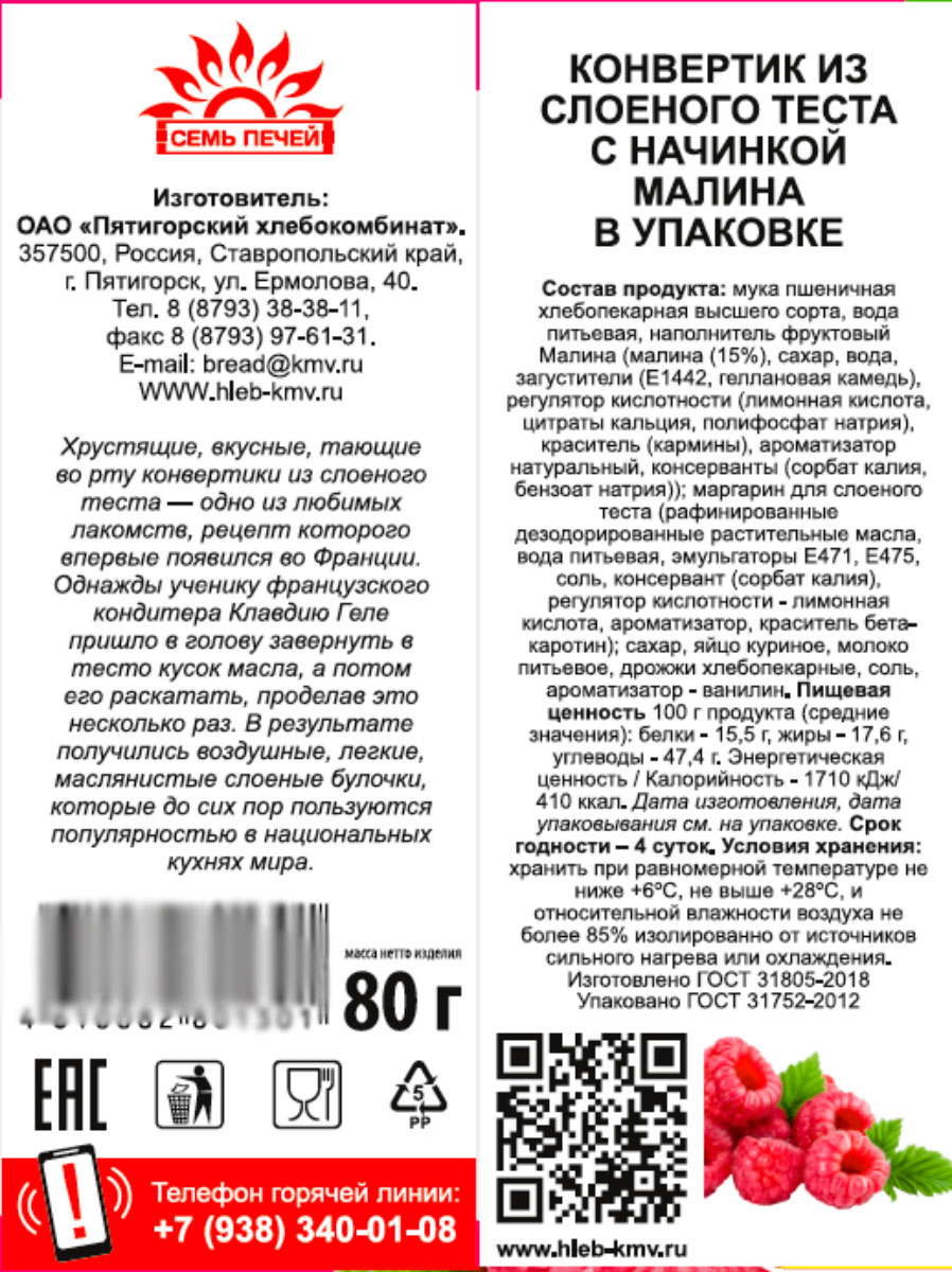 Конвертик с малиной — нежное и аппетитное хлебобулочное изделие, которое станет вашим любимым спутником в повседневной жизни! Этот яркий и сочный перекус зарядит вас энергией в любой момент.