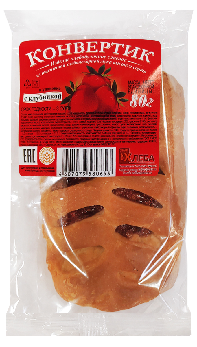 Конвертик Знак хлеба с клубникой 80 г