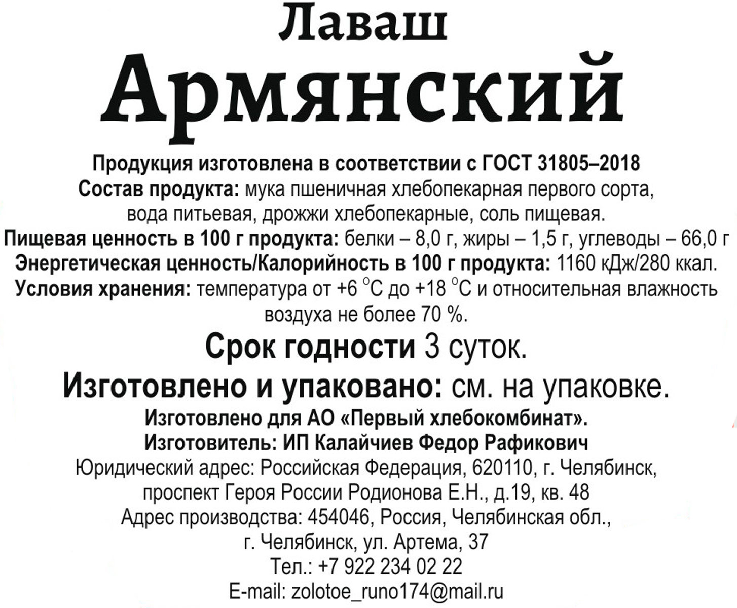 Лаваш «Армянский» — армянская тонкая лепешка, которую пекут традиционным способом в специальной глиняной печи – тандыре. Лаваш «Армянский» подходит для приготовления роллов, легких закусок и подачи мясных блюд.